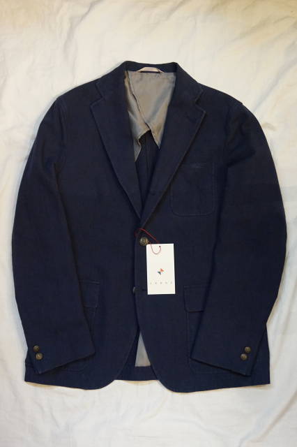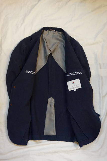 シルエットはスッキリとした細身で、着丈も短すぎることのないバランスの良いサイズ感、、又、、脇下からのシェイプもとても綺麗な、 3ボタンで裾のカーブもややきつめなアイビースタイルです。。