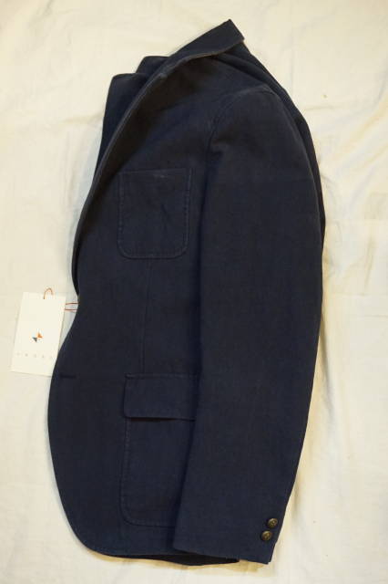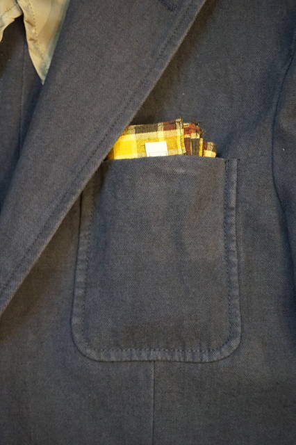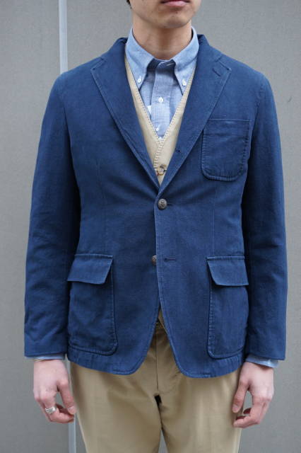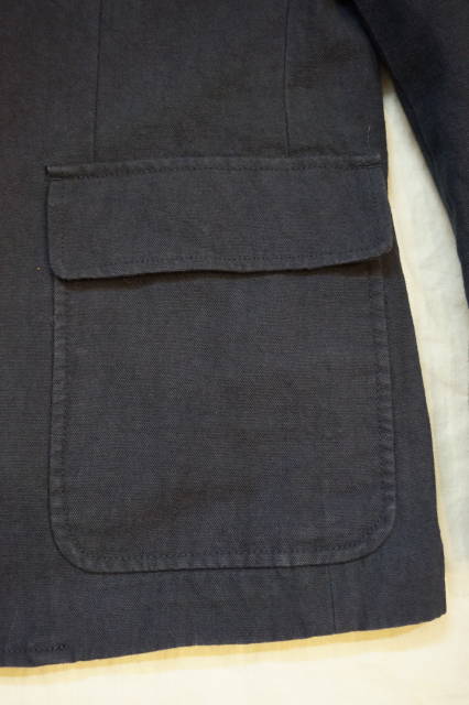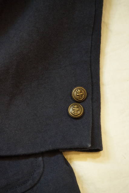 バックベントはセンターフックベント仕様。。両裾にはフラップ付きのパッチポケット仕様。。袖口は開きみせ。 そして、ボタンはアイビー定番の燻し金ボタンを使用。。