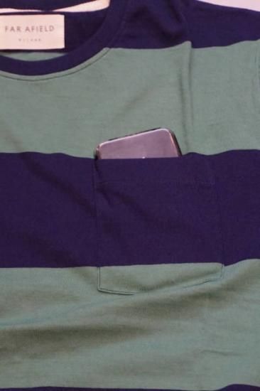 『FAR AFIELD』 (ファー アフィールド) ボールド ストライプ ポケットTシャツ ボーダーポケT 英国ブランド