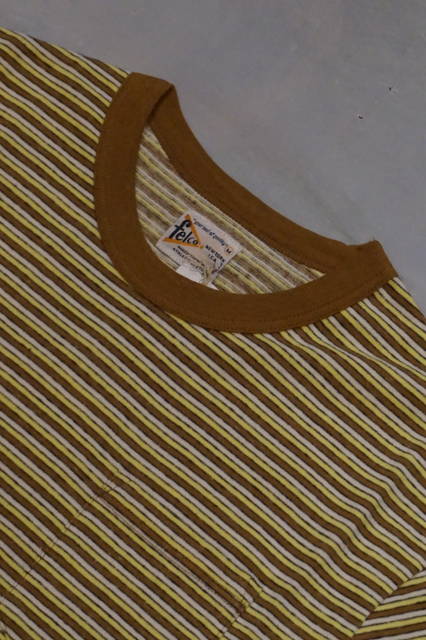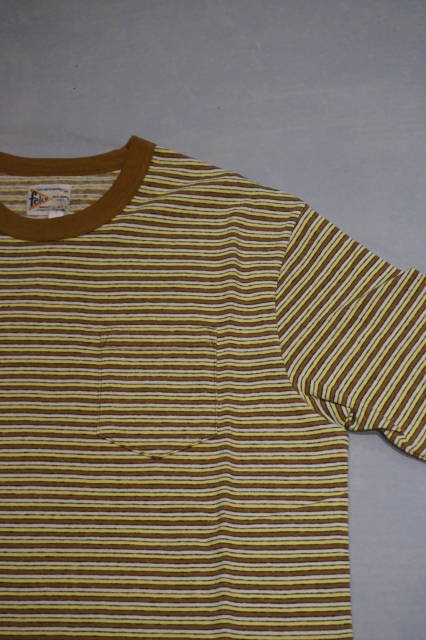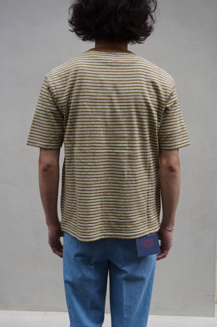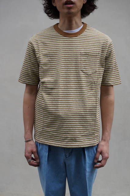 『FELCO』 (フェルコ) 半そで クルーネック ポケット Tシャツ リサイクル マルチストライプ(イエロー系) 日本製