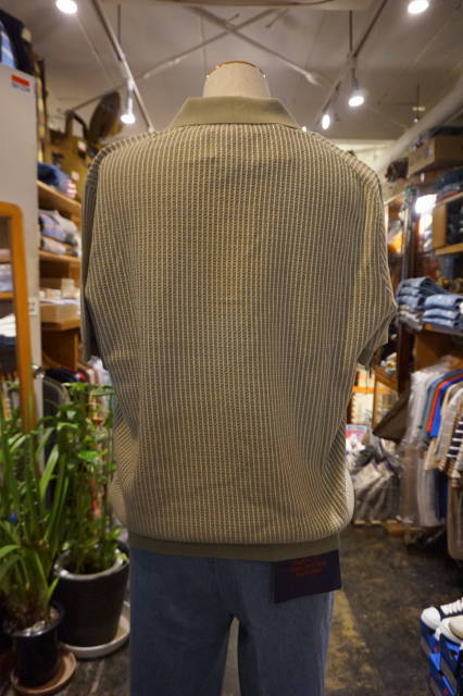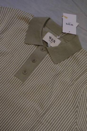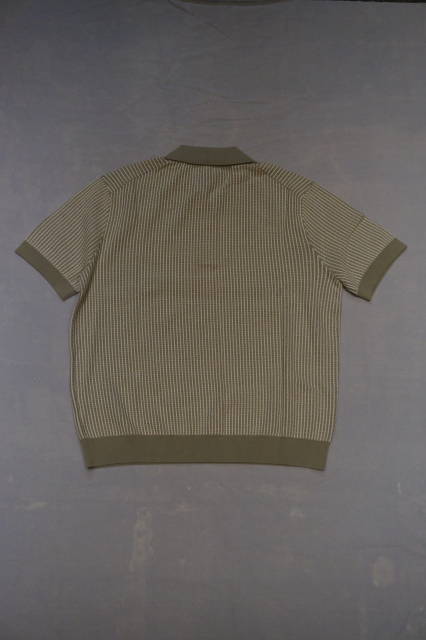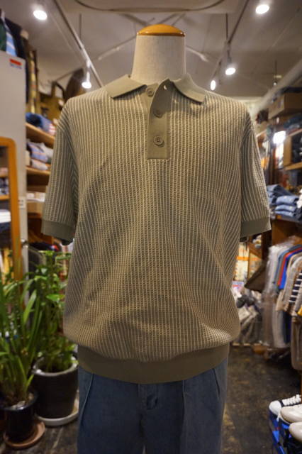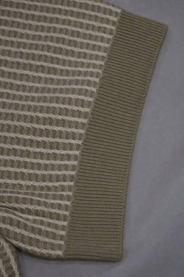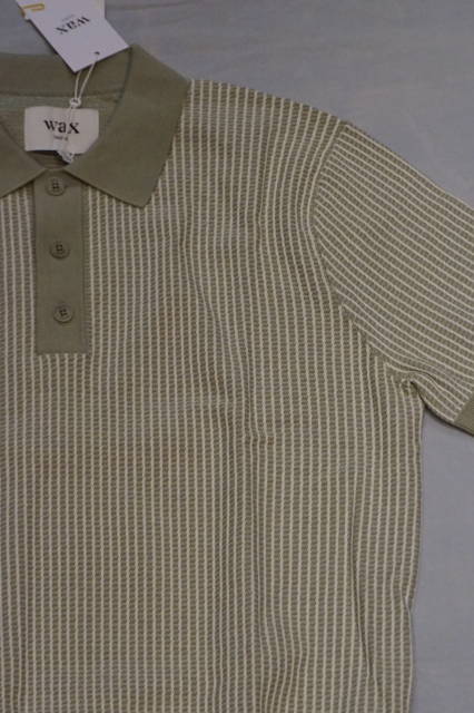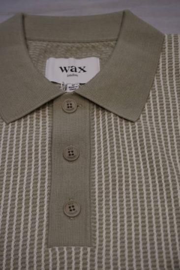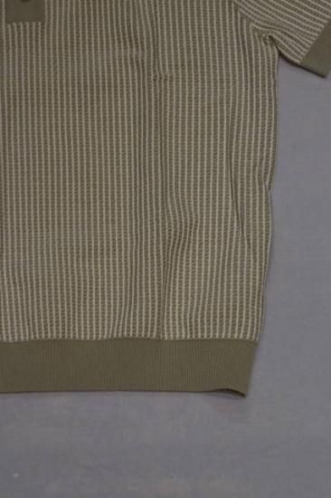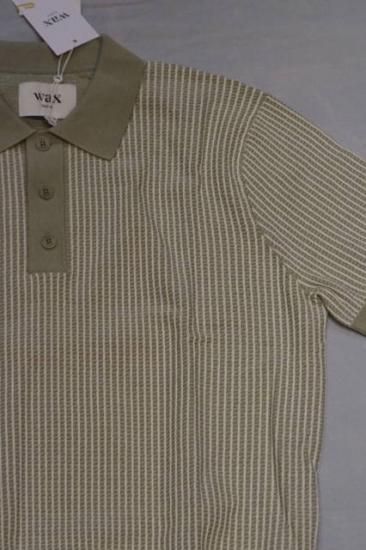 『WAX LONDON』(ワックスロンドン)ラダーストライプ トリノ ニット 半そでポロ (ライトカーキ)