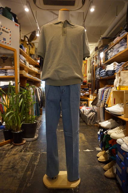 又、ライトカーキとエクリュのツートーンの、はしごステッチ(LADDER STRIPE)の、細かいストライプ柄を表現しているのが、