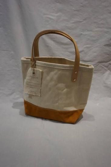 『HERITAGE LEATHER Co』 (ヘリテイジレザーカンパニー) スェード ボトム ミニ トート ナチュラルキャンバスxスェード(ブラウン) アメリカ製 NO 8663