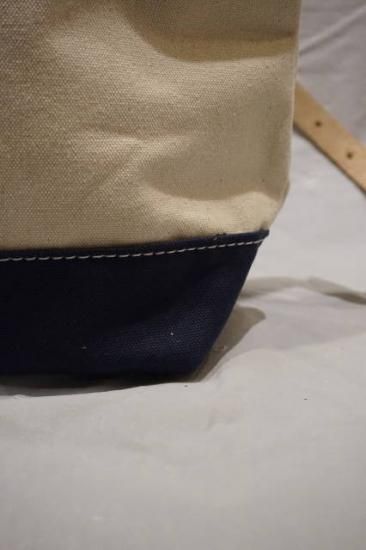 本体はナチュラルのキャンバス地に、底にも同じ素材で、合わせやすいネイビーカラーを採用した、