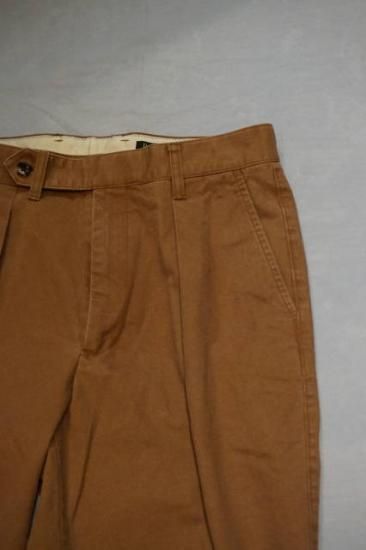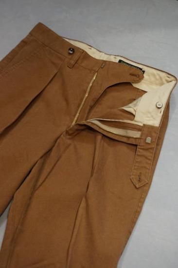 フロントにプリーツのあるワンタック 、両サイドのスラントポケット、ジッパーフライ仕様で持ち出し付き。