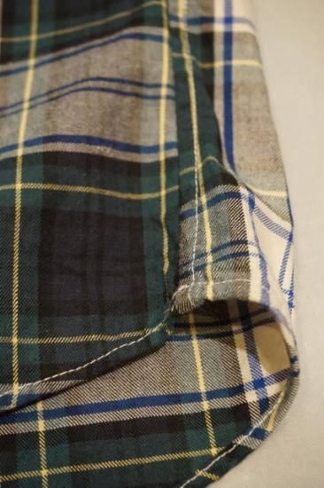 素材はアクセントのあるタータンチェック柄で、程よいハリコシ感のあるコットンツイル素材を使用。。