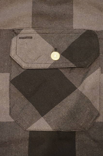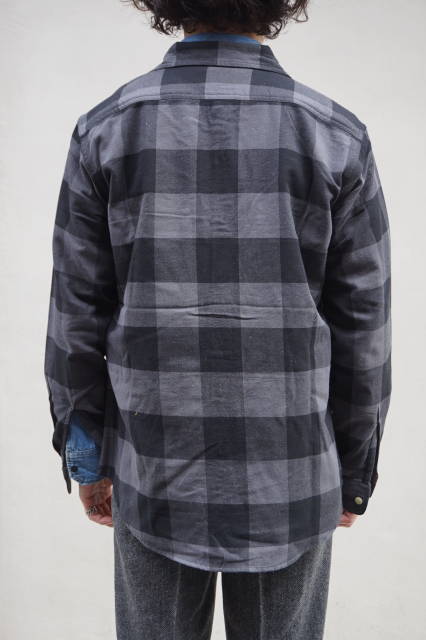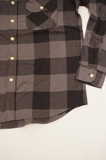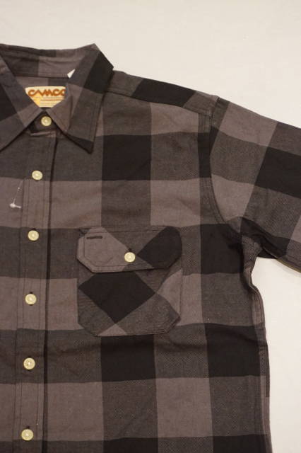 『CAMCO』(カムコ) 長袖 コットンチェック ワークシャツ ライトネル フラップポケット仕様 (ブラックxグレー)
