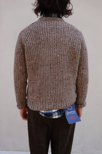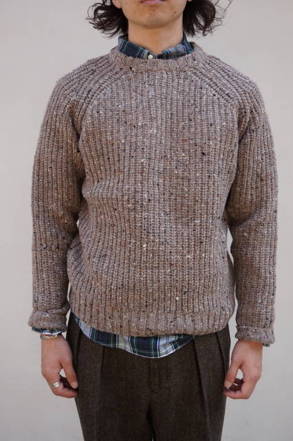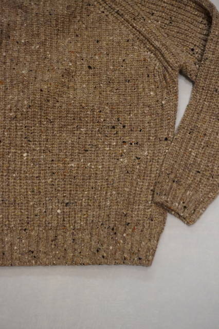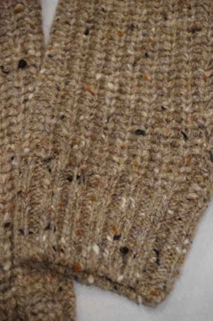 今回のアランセーターはシンプルなリブ編み仕様にネップが入ったシンプルなデザインです。