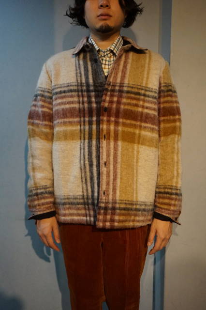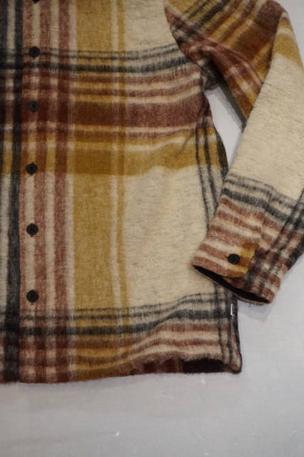 大き目のチェック柄にシャギーのような風合い(起毛した素材)が見た目も、着ても温かみを増し、ジャケット代わりとしても