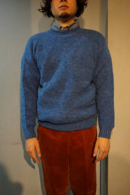 クルーネック シェットランドセーターをシャギードッグ仕様で、制作したアイテムです。