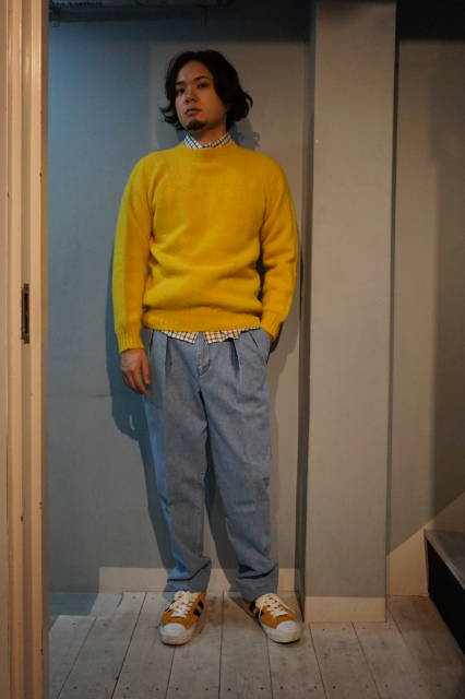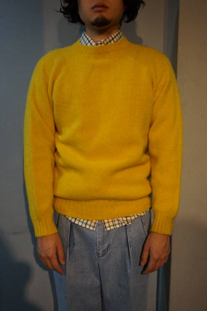 『CE FORSYTH』(シーイーフォーサイス)シームレス シャギードッグ シェットランドセーター クルーネックニット スコットランド製 (イエロー)