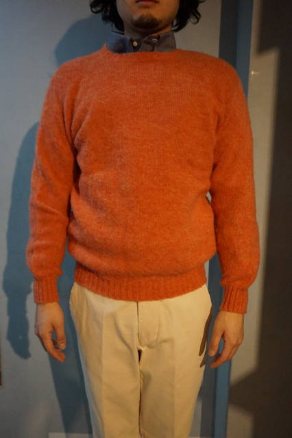 『PETER BLANCE』 (ピーターバランス) シャギードッグ シェットランド セーター クルーネック スコットランド製 (オレンジ)