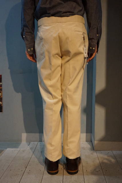 フロントはボタンフライ、ウエストはベルトループレスに、サイドアジャスター仕様。。