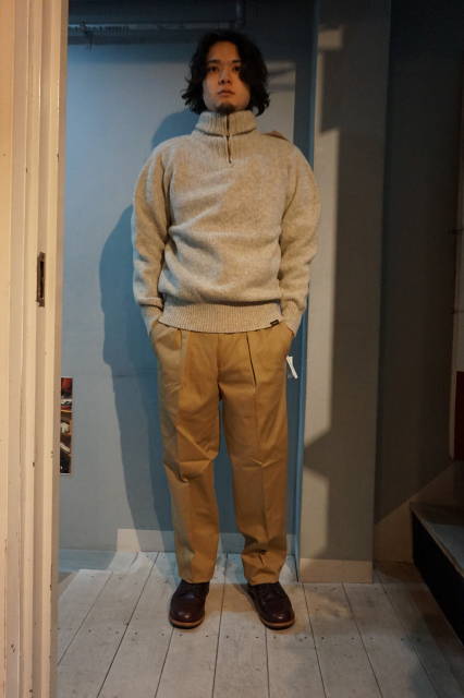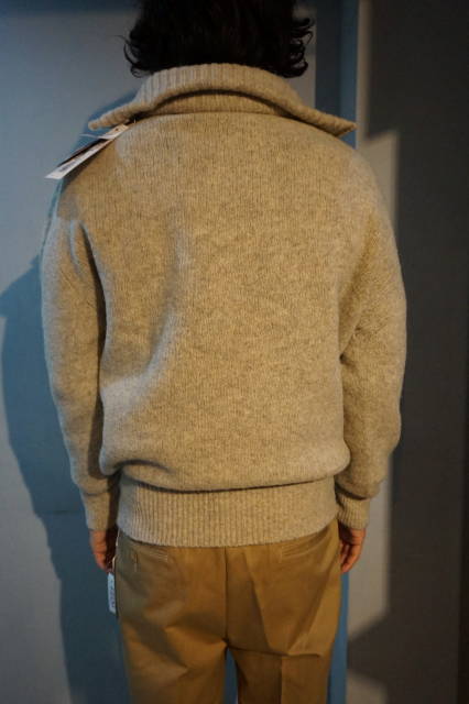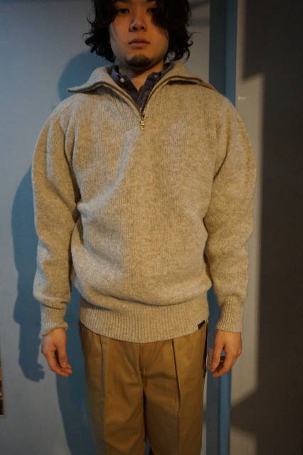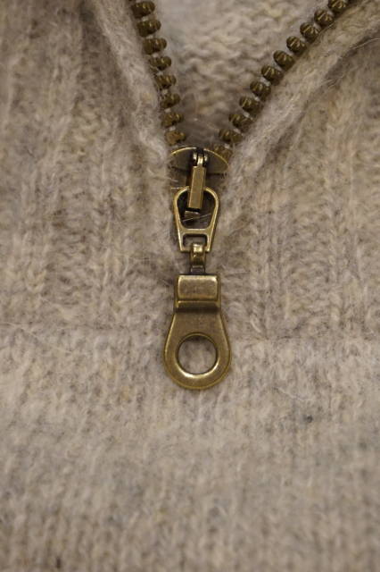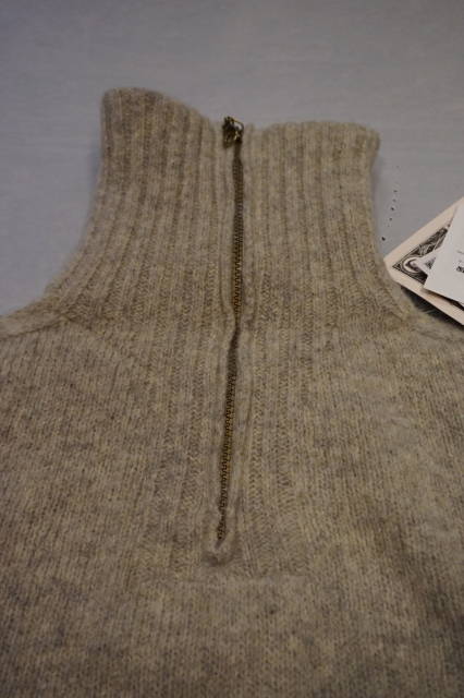 首元のハーフジップがアクセントとなり、BODYがメリヤス編み、襟と裾と袖口にはリブ編み