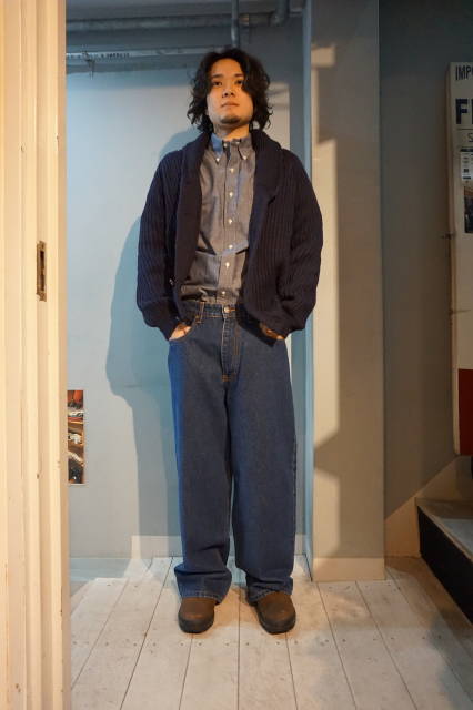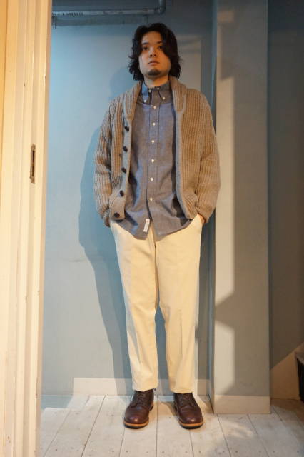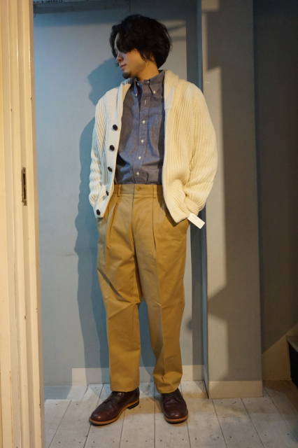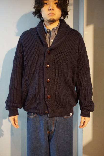 ゆったり目のボディに、大き目のSHAWLCOLLARが特徴のCARDIGAN、、