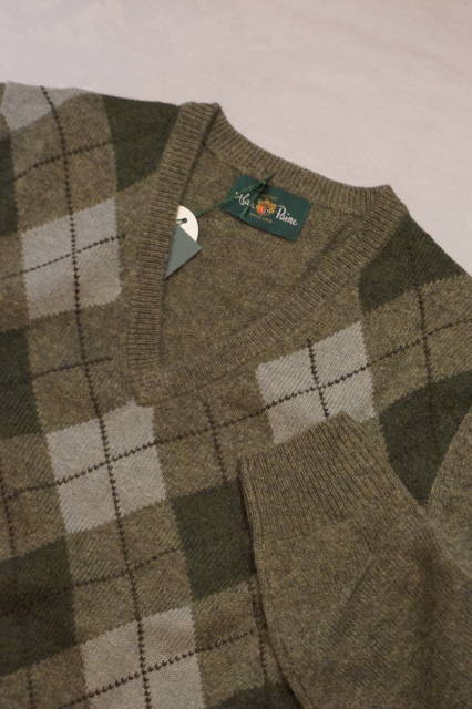 『ALAN PAINE』 (アラン ペイン) 7G ラムウール アーガイル Vネックセーター 英国ブランド