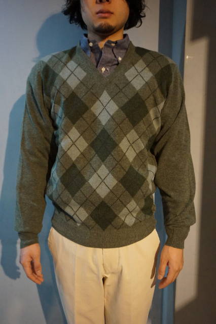 トラディショナルなアーガイルのVネックセーター。。