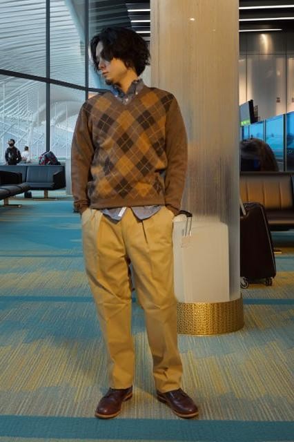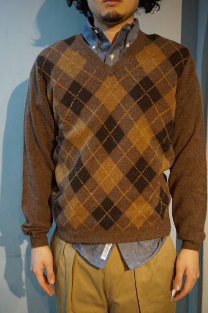 フロントはLANDSCAPE BASEのARGYLE柄、NECKと、袖、バック、は無地で襟、袖口リブ編み