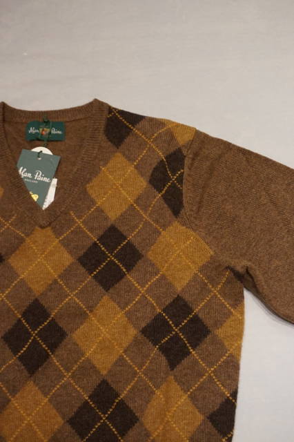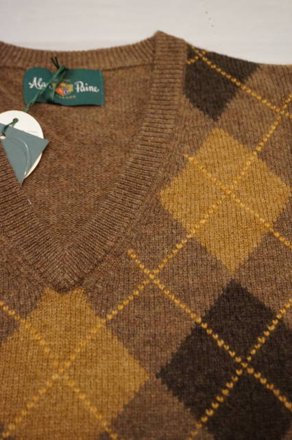 『ALAN PAINE』 (アラン ペイン) 7G ラムウール アーガイル Vネックセーター 英国ブランド