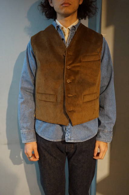 フランス製ベルベット(DARKBEIGE コーディロイ)仕立てのベスト!
