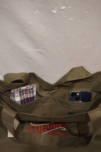 素材は、CORDINGS定番のトラウザー同様、ブリスベンモス生地を使用したベーシックなトート。。