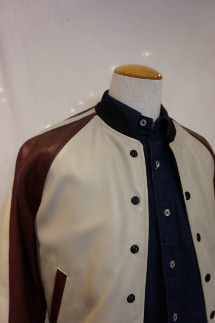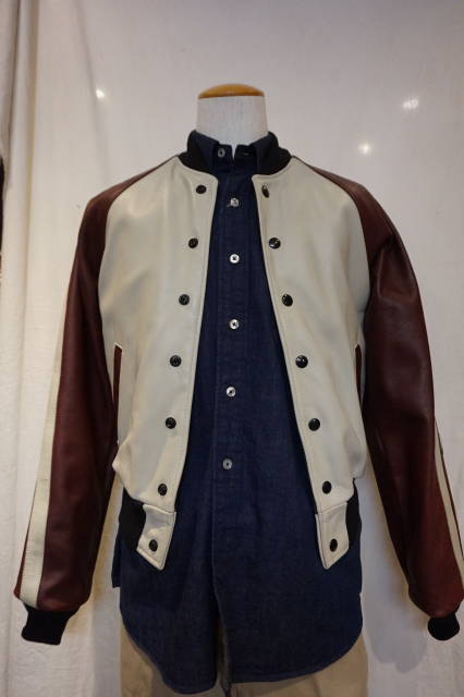 BODYは、NATURAL、袖とポケットにはBROWNのツートンカラーに、、ブラウンの袖にはNATURALのラインを施したお洒落な、ジャケットです。。 、