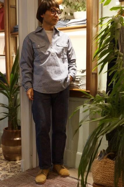1930年代のワークシャツをinspireしたハーフジップワークシャツ。